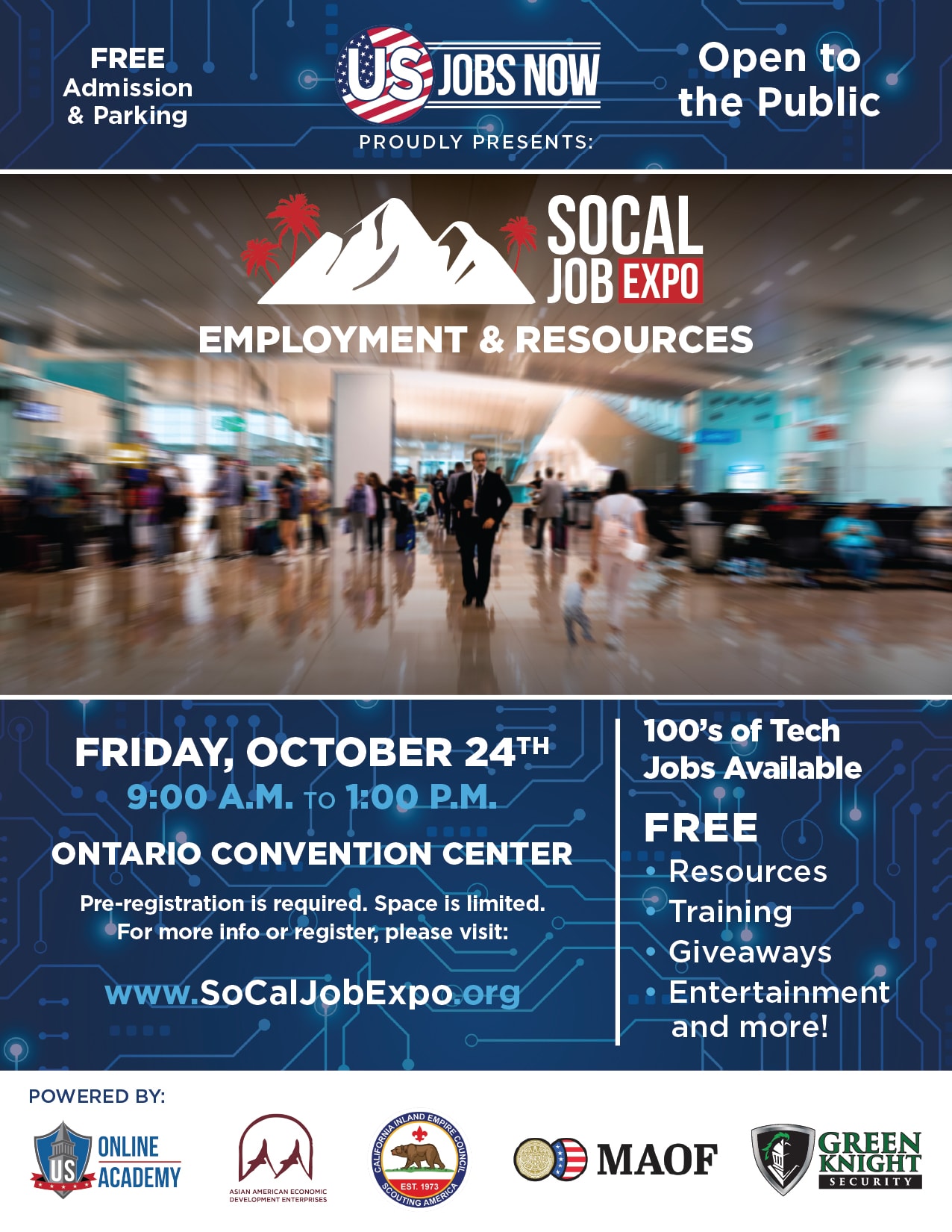 Come Find Your Job! Friday, October 24, 2025 OPEN to the Public at the Ontario Convention Center Partnering together to bring 1,000's of jobs to the whole community.Presenting Sponsors: